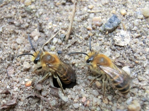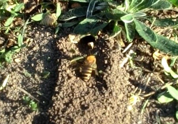 Ende August/Anfang September schlüpfen zunächst Bienen-Männchen aus den unterirdischen Nestern. Anders als die Larven können die erwachsenen Tiere auch Pollen und Nektar anderer Pflanzen als Nahrungsquelle nutzen. Wie auf den Bildern zu erkennen ist, baut die Efeu-Seidenbiene ihre Nester bevorzugt in sandige, lockere Böden. Unser Garten in Nürnberg bietet hierfür die optimalen Bedingungen!